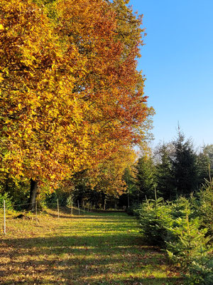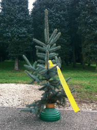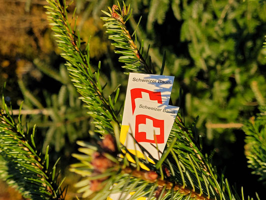 Wählen Sie anschliessend in der Tannenbaumanlage den schönsten Weihnachtsbaum aus und binden Sie das Band gut sichtbar um den Stamm.
